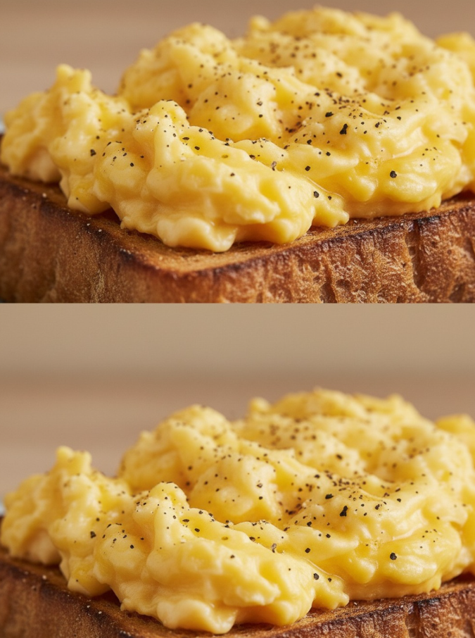 We’re talking about luxuriously soft, custard-like scrambled eggs — golden, tender, and so creamy they melt in your mouth like buttered clouds.